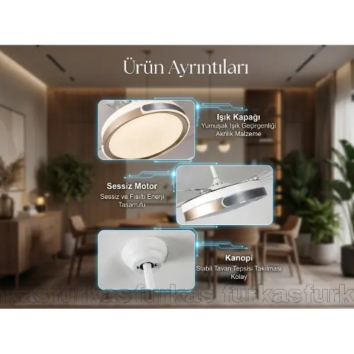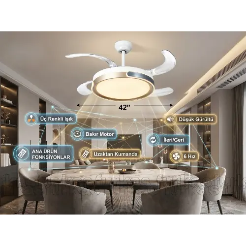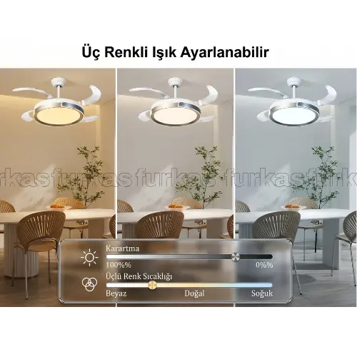 Gizli Kanatlı Tavan Vantilatörü & 3 Işık Modu, Kumandalı, Şık Tasarım