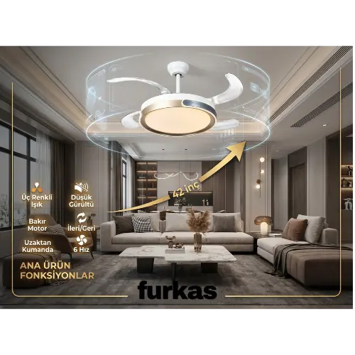 Gizli kanat teknolojisi, LED aydınlatması ve kumandalı kontrol sistemiyle FURKAS tavan vantilatörü, hem yaz hem kış kullanımına uygundur. Sessiz motoru ve estetik tasarımıyla iç mekanlarda fark yaratır.Renk seçenekleri ve 3 ışık moduyla öne çıkan FURKAS tavan vantilatörü, sessiz çalışan motoru ve yaz/kış yönlendirme fonksiyonlarıyla tüm yıl boyunca konfor sağlar.